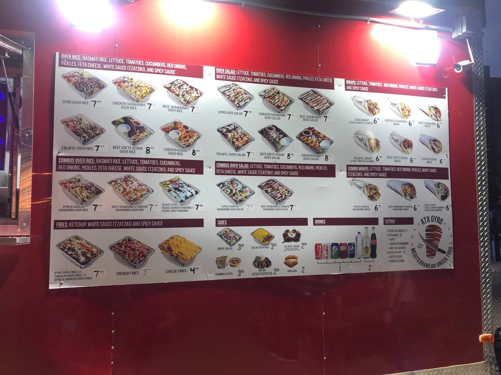 Introducing ATX Gyro, the food truck sensation located at 2512 Rio Grande St, Austin, TX, where Mediterranean flavors burst forth with every bite. Famous for its exceptional gyros and shawarma, this culinary haven offers a delightful array of dishes, ensuring a satisfying experience for every guest. With affordable prices, such as the Gyro Over Salad and Chicken Shawarma Wrap both priced at $10.99, it’s no wonder customers repeatedly rave about their meals.